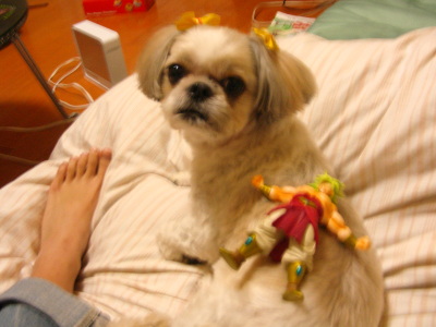その直前に、地元の中古ショップでまさかのブロリー発見→購入したブロもこっそりー実家にお持ち帰りーして、犬のくり(右下、再登場)と記念撮影してみました。完全に「え、おま・・・なにしとん・・・」って顔してますね。足も写ってしまってグダグダ感のある仕上がりです。三脚を使わなかったので他の奴はブレてますしね!