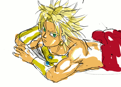 萌えアニメの、アニメ雑誌の描き下ろし水着イラストみたいに、寝そべってるブロリー達を描こうとしたんですが断念。