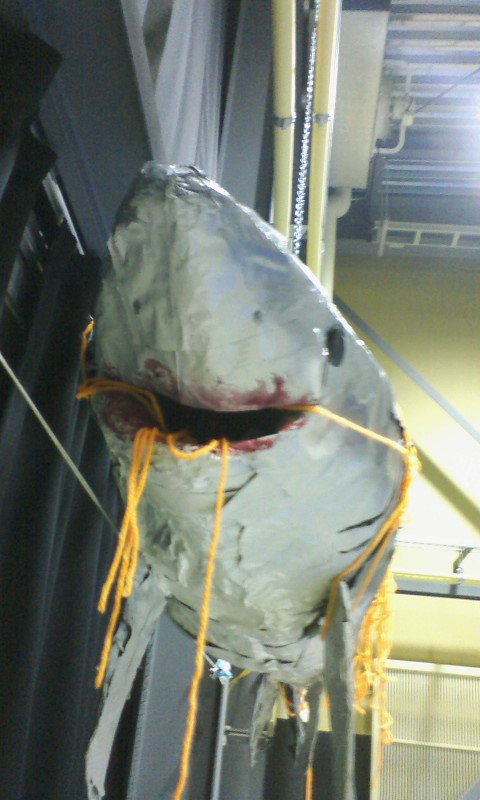 広くて天井が高いぶん、アホみたいに寒くてコートも脱げない演習室でもくもくとサメとヒーローをつくっております。